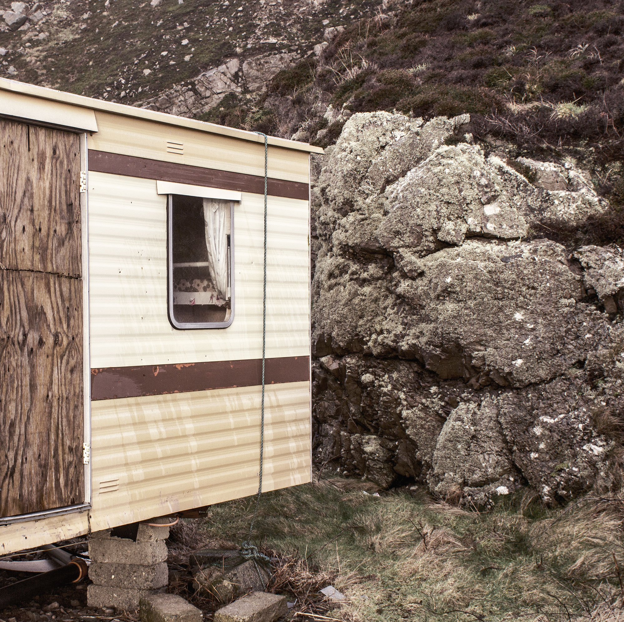 Perched on the boundary of two great competing forces, these flimsy fabrications almost taunt the Atlantic in a ludicrous game of dare as they retreat into the rock face as far they can, looking incongruous and utterly impermanent. I have borrowed the title ‘Inventing Ireland’ from Declan Kiberd’s book of the same name (first published 1995). The book is a critical tour de force examining the creation of a nation state and in particular the complexity of the history between Ireland and England in relation to each Nations self-image. This series of photographs is part of a larger on-going project in which I am examining my part in the age old Irish diaspora. As is so often the case with émigré’s, I live with a latent sense of ‘returning’. But return to what exactly?